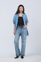 An oversized checkered shirt with a longline cut for a relaxed yet sleek look. Made from soft, lightweight fabric that drapes naturally and feels comfortable all day. Wear it open as an outer or button it up for a simpler look.