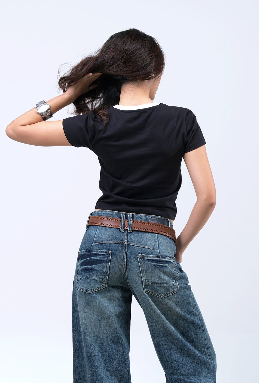 Baby tee hitam dengan potongan pas badan dan rib kontras di leher, memberi sentuhan simple tapi menarik. Bahan spandex premium membuat kaos lembut, stretch, dan nyaman dipakai sepanjang hari.