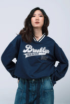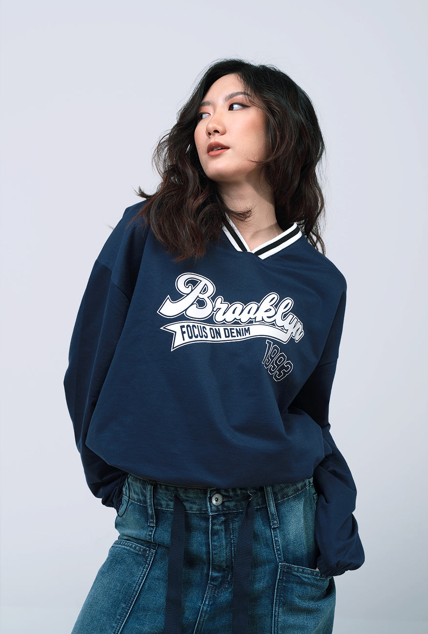 Warna green bikin Brooklyn ini tampil beda dan bold. Dilengkapi dengan grafis timbul dan v-neck bergaris dua warna, Brooklyn Green sweater sporty-retro siap dipakai untuk casual day out.