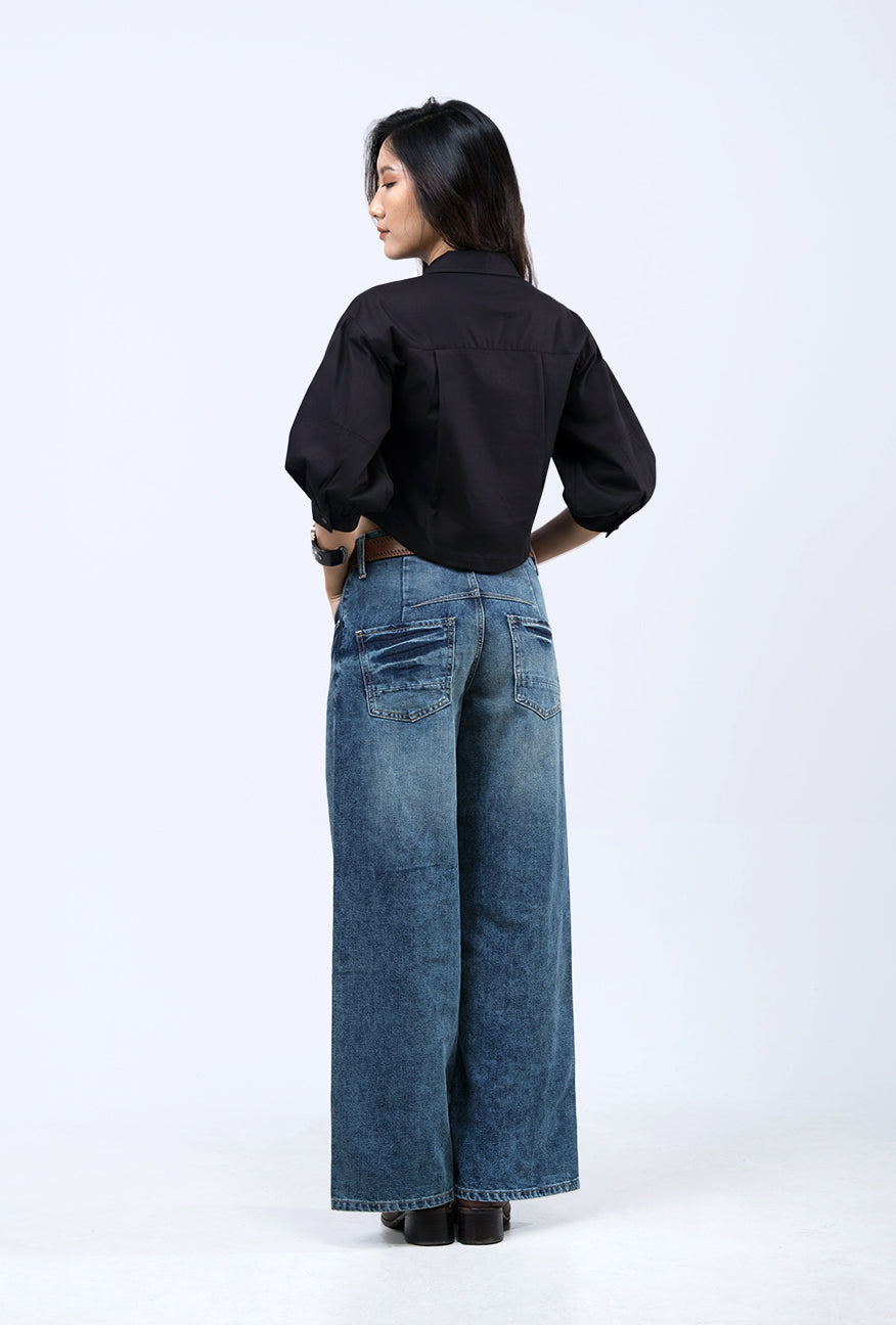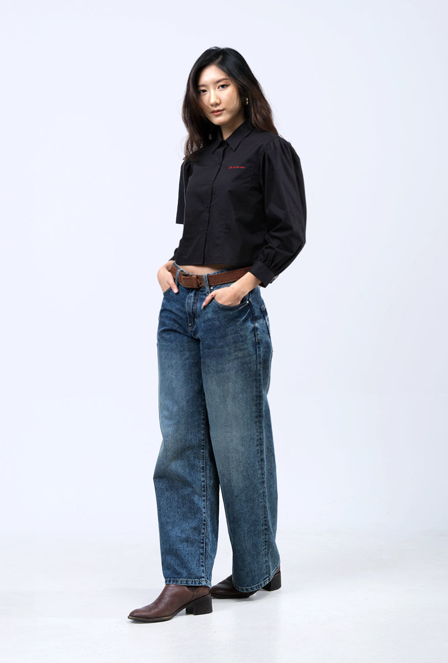 Kemeja hitam ini hadir dengan desain crop yang clean, dilengkapi detail bordir “La vie en rose” di sisi dada kiri. Potongan boxy dengan lengan puff serta aksen ruched di bagian belakang memberikan siluet yang berisi dan feminin. Kemeja ini jadi pilihan sempurna untuk tampilan kasual.