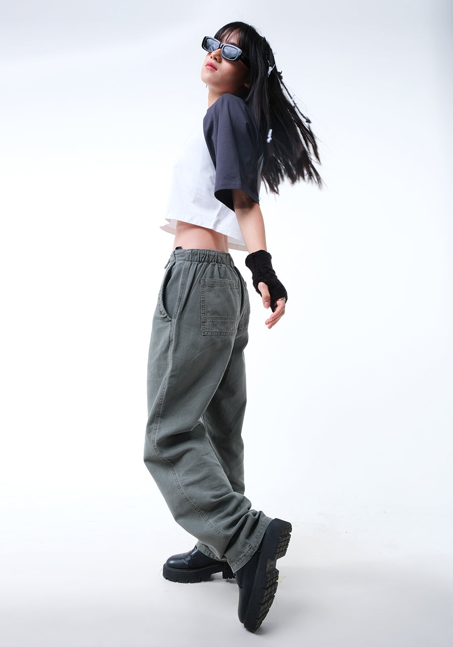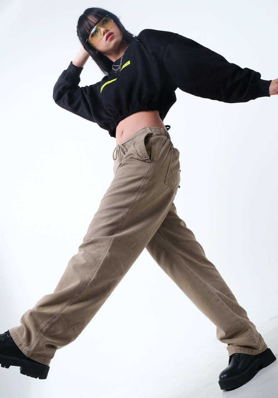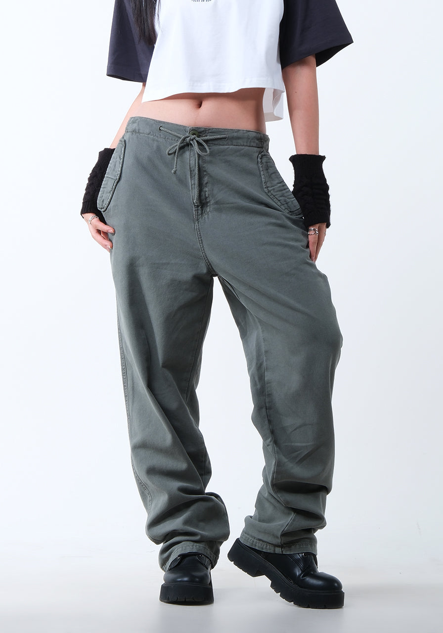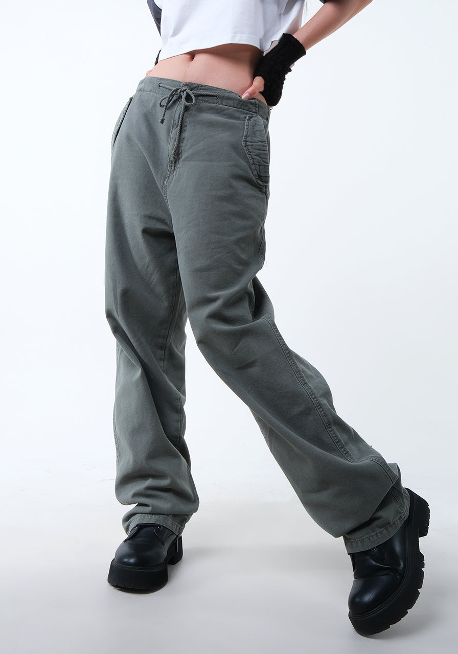 - Celana pinggang ketinggian medium.