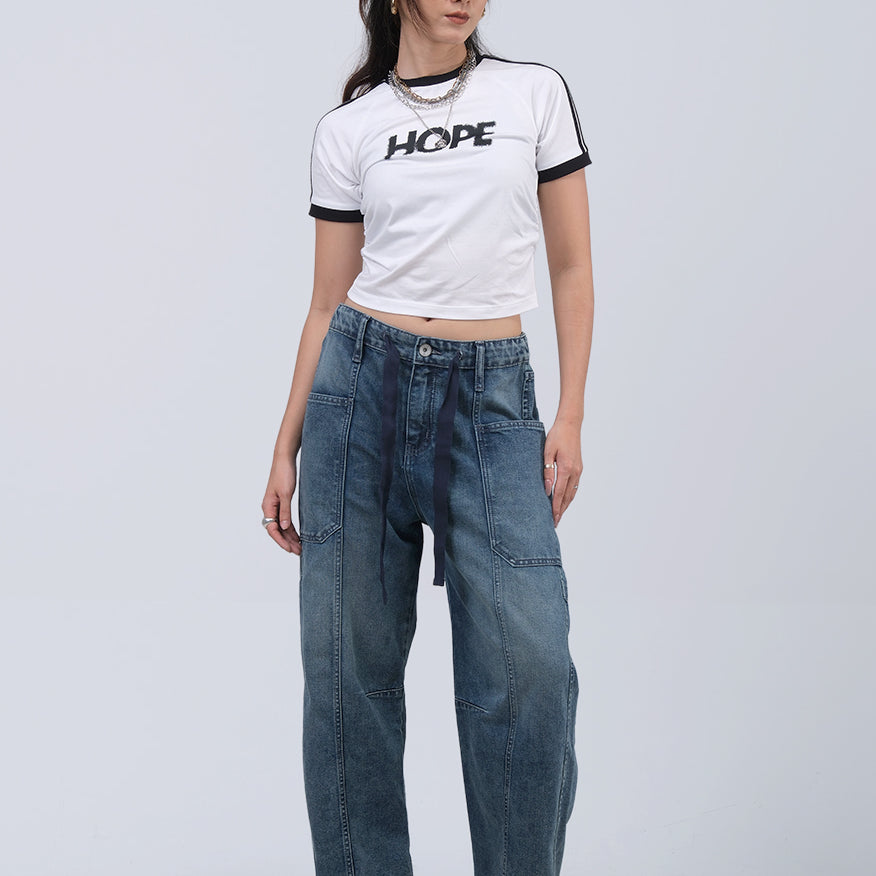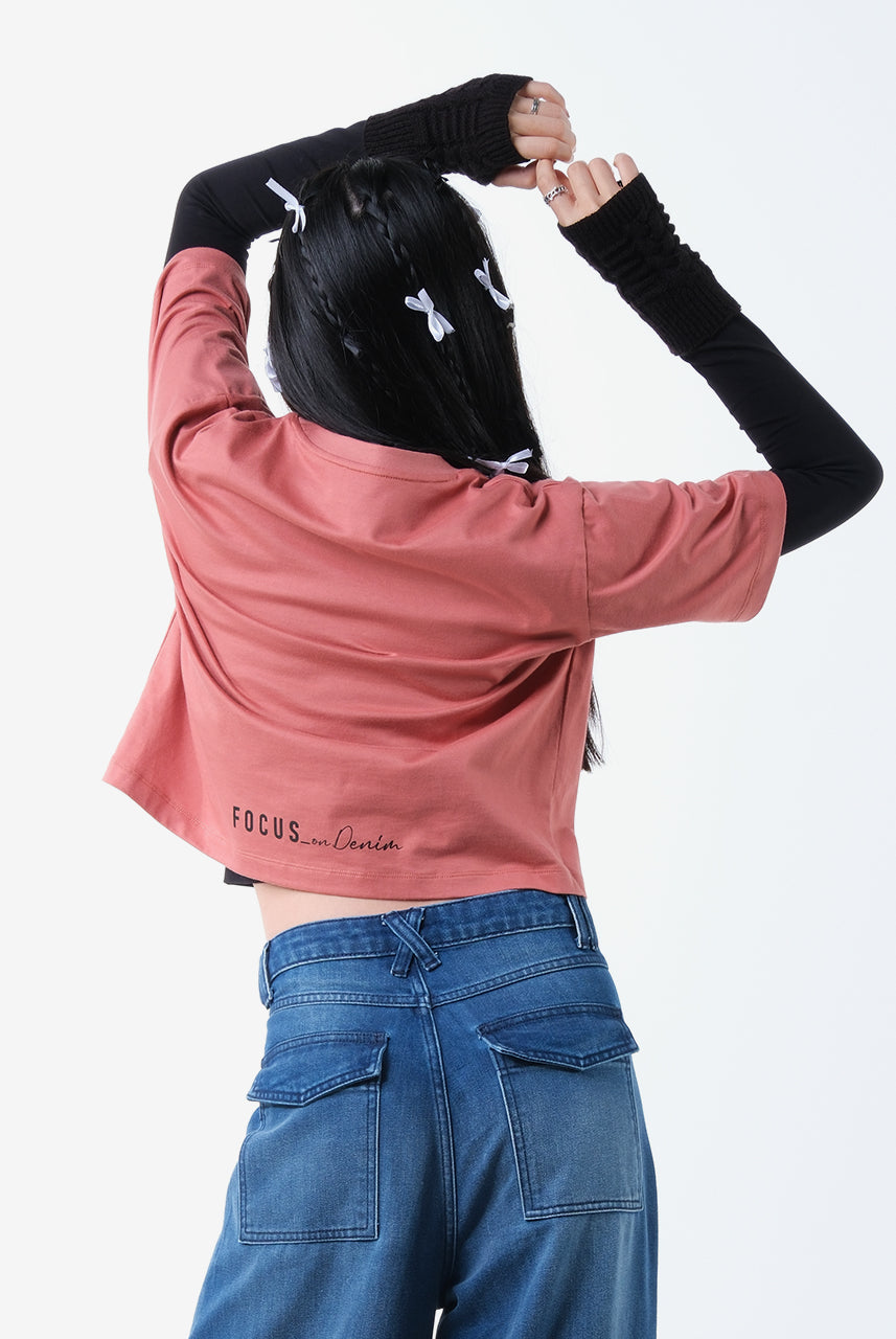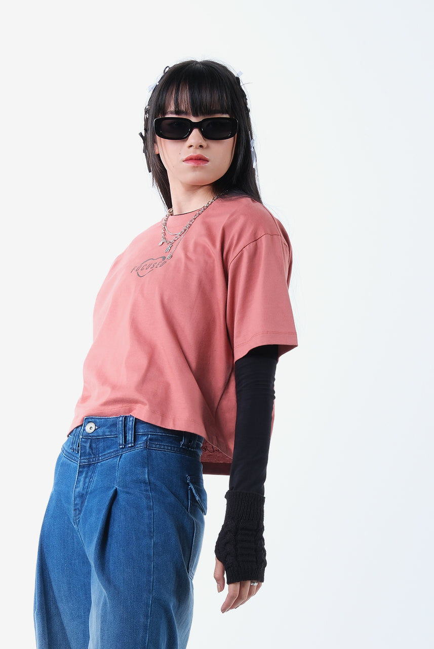 High-low baby tee, lengkung pada bagian bawah, bahan spandex premium